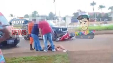 Mulher fica ferida após colisão entre carro e moto no Jardim América, em Vilhena