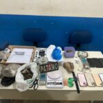 Durante buscas na residência, foram apreendidos aproximadamente 1,279 kg de maconha, 36 gramas de substância análoga à cocaína, 14 gramas de skank e 7 gramas de comprimidos de ecstasy, além de duas balanças de precisão, quatro aparelhos celulares do tipo iPhone, um smartwatch e objetos sem comprovação de origem.