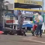 Por volta das 17h15min da tarde desta quarta-feira, 15 de abril de 2026, uma colisão entre uma caminhonete e uma motoneta foi registrada na rotatória da BR-364, que dá acesso à avenida Marques Henrique, no centro de Vilhena.