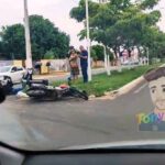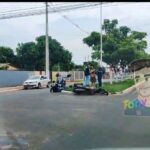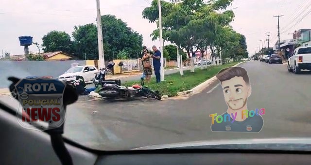 Acidente entre motocicletas é registrado em frente ao Supermercado Irmãos Gonçalves, em Vilhena