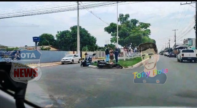Acidente entre motocicletas é registrado em frente ao Supermercado Irmãos Gonçalves, em Vilhena