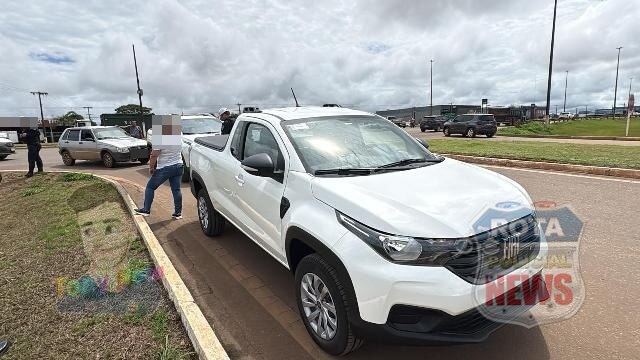 Conforme informações apuradas no local, uma picape Fiat Toro, ano 2026, e um carro modelo Fiat Uno trafegavam pela rotatória e seguiam no mesmo sentido, descendo em direção à avenida Marechal Rondon, quando acabaram colidindo.