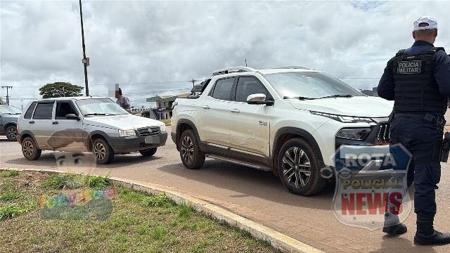 Acidente entre picape e Fiat Uno é registrado em rotatória da BR-364 em Vilhena