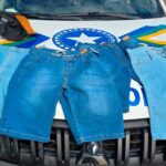 Durante a abordagem e busca pessoal, foram encontrados ocultos no interior da bermuda do abordado cinco bermudas jeans e um boné, itens posteriormente reconhecidos como provenientes de um segundo furto ocorrido em uma loja de confecções localizada na mesma avenida.