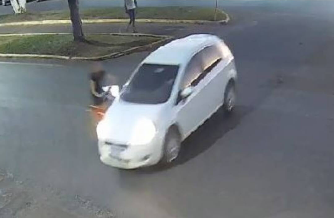 Imagens de uma câmera de monitoramento instalada num trecho da avenida Paraná, próximo à loja Gazin, em Vilhena, registrou o momento em que um carro atinge a bicicleta elétrica conduzida por uma mulher.
