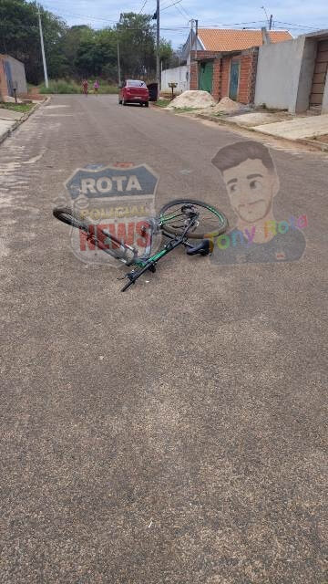 A colisão envolveu um automóvel Ford Ka Sedan, de cor vermelha, e uma bicicleta conduzida por uma jovem de 20 anos.