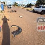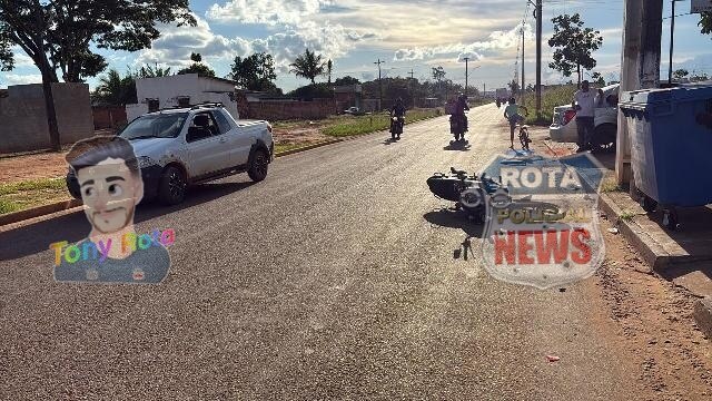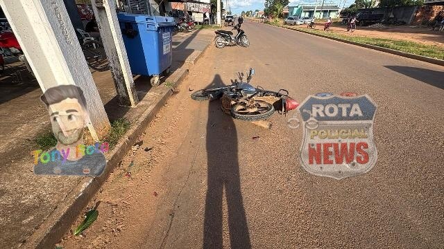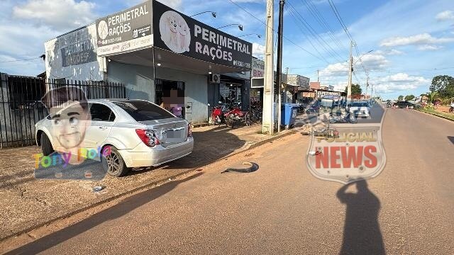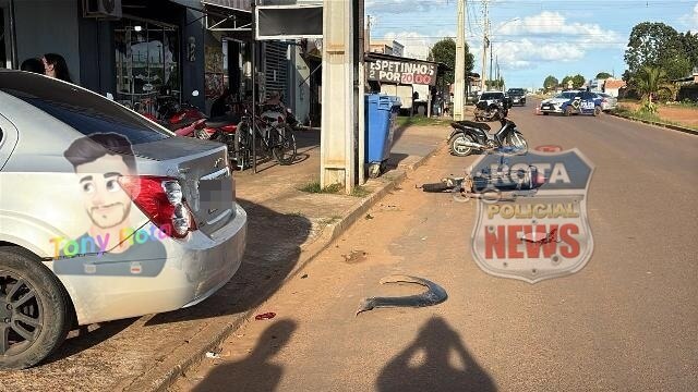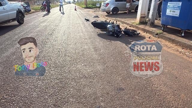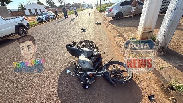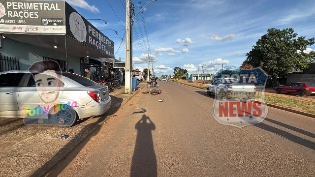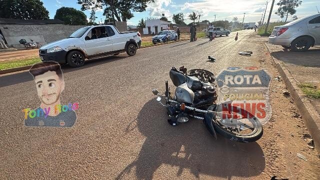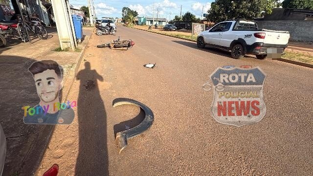 Na tarde desta sexta-feira, 27 de fevereiro de 2026, uma colisão envolvendo uma motocicleta Honda CG Titan, uma picape Fiat Strada e um Chevrolet Sonic foi registrada na avenida Dedimes Cechinel (Perimetral), esquina com a rua 731, no bairro Cristo Rei, em Vilhena.