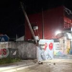 Com o impacto, parte da fiação ficou solta, atravessando de um lado ao outro da via, situação que representa perigo tanto para motoristas quanto para pedestres que transitam pela região.