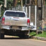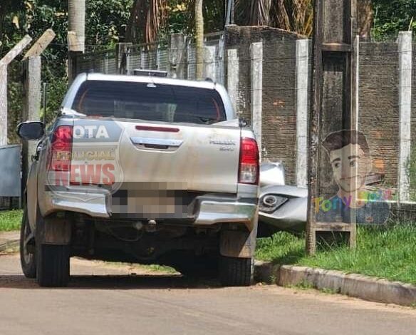 Na tarde desta sexta-feira, 06 de fevereiro de 2026, um internauta flagrou uma camionete Toyota Hilux batida e aparentemente abandonada na rua Jacomina M. Paludo, no bairro Cidade Verde, no residencial Praças de Vilhena, zona sul de Vilhena (RO).