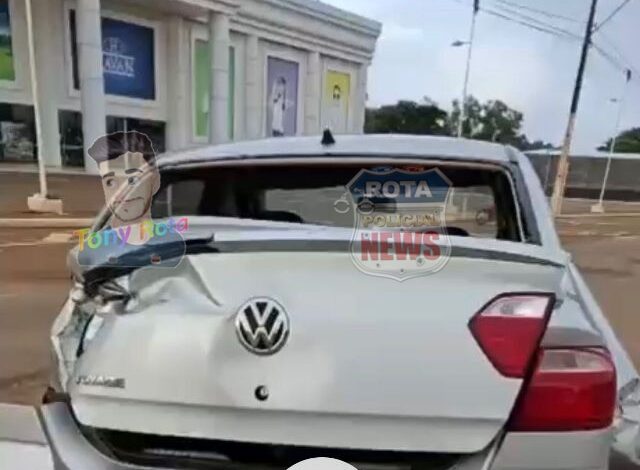 Um vídeo enviado à reportagem mostra um Volkswagen Voyage totalmente destruído e abandonado no meio da avenida, com cones de sinalização alertando os motoristas sobre o sinistro. O veículo apresenta danos tanto na parte dianteira quanto na traseira, indicando a força do impacto.