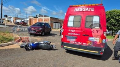 Motociclista fica ferido após colisão com caminhonete no Centro de Vilhena