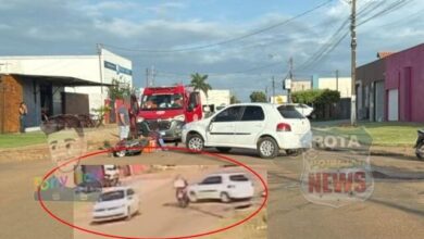 Vídeo mostra momento de colisão entre carro e moto na avenida Curitiba em Vilhena, assista: