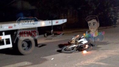 Colisão entre moto e caminhão-guincho é registrada m cruzamento do Jardim Eldorado, em Vilhena