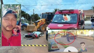 VÍDEO: Motociclista de 40 anos morre entre moto e retroescavadeira acidente registrado por câmeras em Vilhena