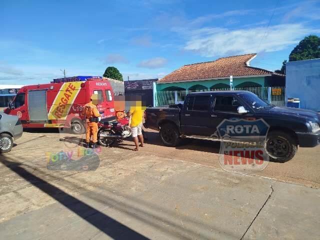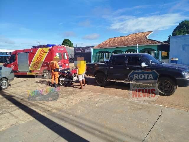 Colisão entre caminhonete e motocicleta deixa ferido no Jardim Primavera, em Vilhena