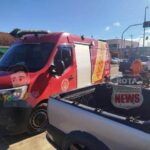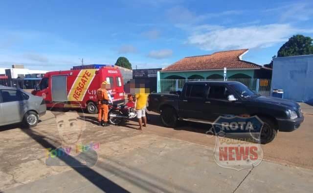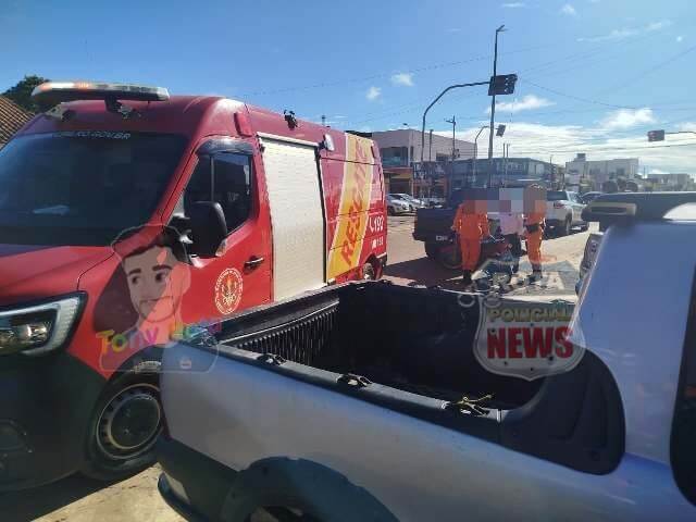 Acidente ocorreu na manhã desta quinta-feira (08) no cruzamento das avenidas Vitória Régia e Curitiba; vítima foi socorrida pelo Corpo de Bombeiros e levada ao Hospital Regional.