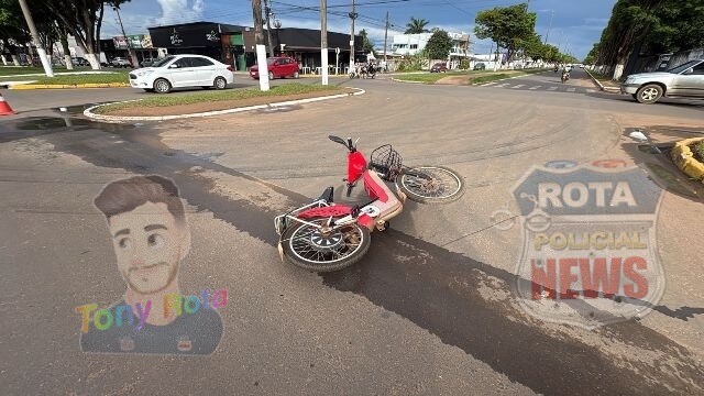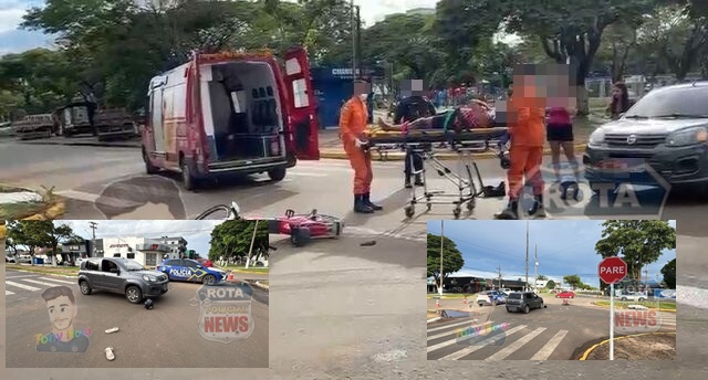 Colisão entre carro e bicicleta elétrica deixa mulher ferida em cruzamento de Vilhena