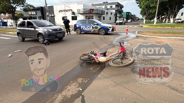 Na tarde desta quinta-feira, 29 de janeiro de 2026, uma colisão envolvendo um veículo Fiat Uno e uma bicicleta elétrica deixou uma mulher ferida no cruzamento das avenidas Tancredo Neves com Brigadeiro Eduardo Gomes, no bairro jardim Eldorado, cidade de Vilhena.