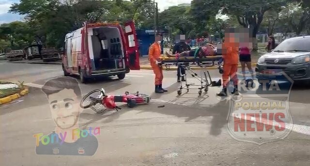 A ciclista já realizava a rotatória do cruzamento quando ocorreu o impacto. Com a colisão, ela sofreu ferimentos e precisou de atendimento imediato.