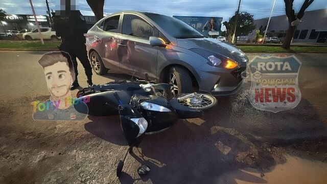 No final da tarde desta segunda-feira, 08 de dezembro, uma colisão entre uma motoneta Honda Biz 125, de cor preta, e um Hyundai HB20 sedan foi registrada no cruzamento da avenida Paraná com a rua 608, no bairro Parque São Paulo, em Vilhena (RO).