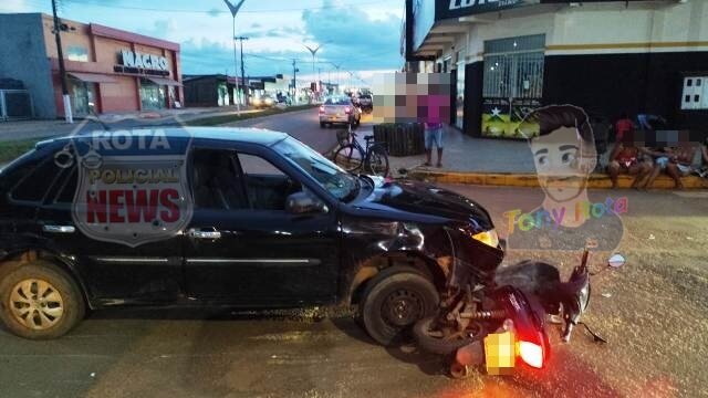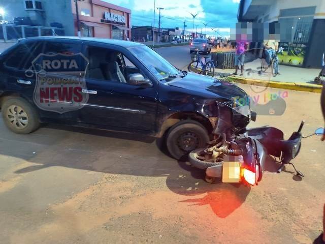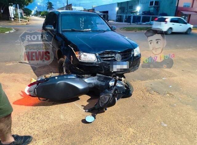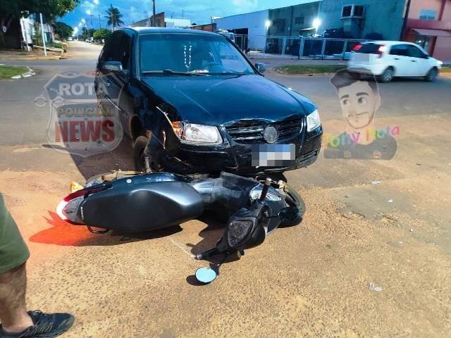 Colisão entre carro e motocicleta deixa dois feridos no bairro Cristo Rei, em Vilhena