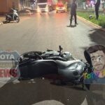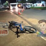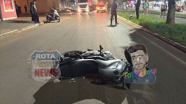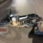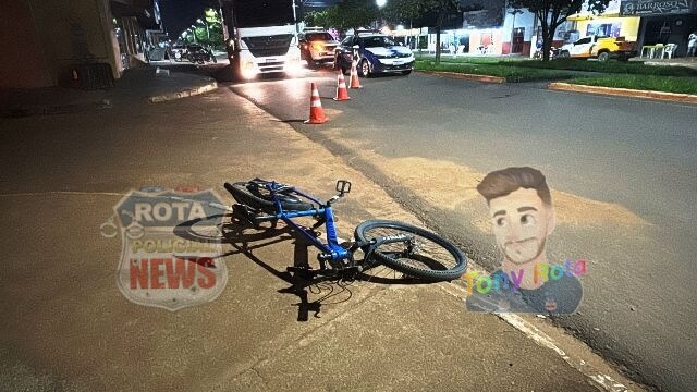 Na noite desta quinta-feira, 23 de outubro de 2025, uma colisão entre uma motocicleta Honda CG Titan, de cor prata, e uma bicicleta Lotus, de cor azul, foi registrada na avenida Paraná, em Vilhena (RO).