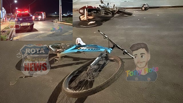 Colisão entre moto e bicicleta deixa dois feridos na divisa dos bairros Bela Vista e Alto dos Parecis, em Vilhena