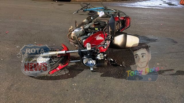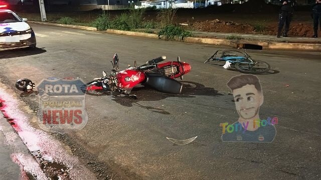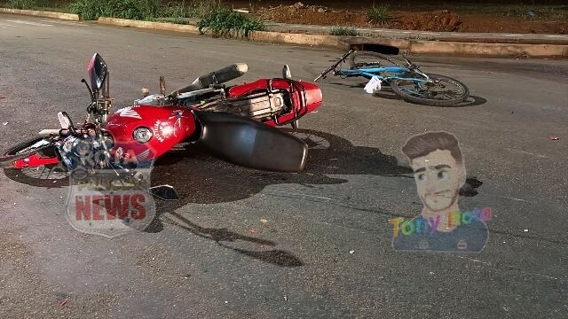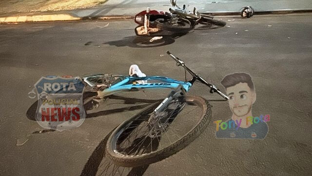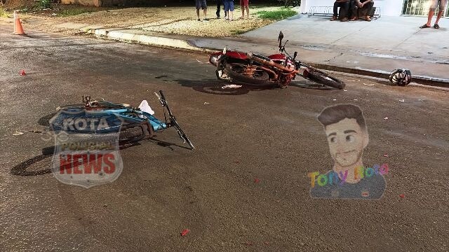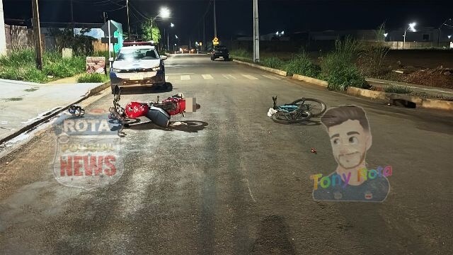 Na noite desta segunda-feira, 06 de outubro de 2025, uma colisão entre uma motocicleta Honda CG Titan de cor vermelha e uma bicicleta Lótus de cor azul foi registrada no entroncamento da rua Atílio Cervi com a Rua 8225, na divisa dos bairros Bela Vista e Alto dos Parecis, em Vilhena.