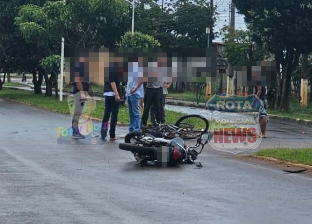 Um acidente de trânsito envolvendo uma motocicleta e uma bicicleta foi registrado no início da tarde desta quarta-feira, 04 de março de 2026, na Avenida Paraná, em frente à Green Gardem, no bairro Parque São Paulo, em Vilhena.