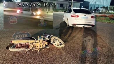 Colisão entre motocicleta e carro de luxo é registrada em rotatória da BR-364 em Vilhena