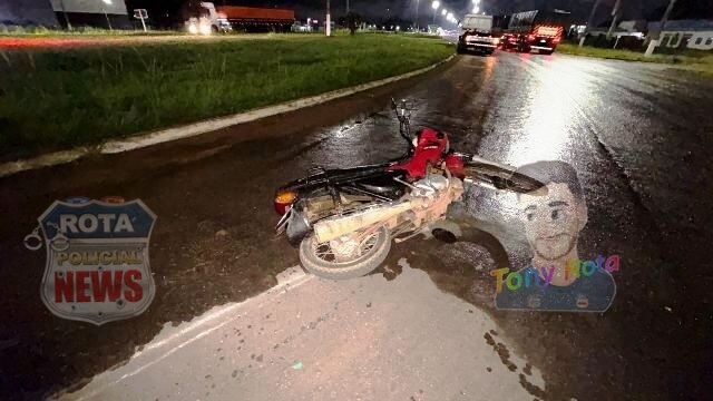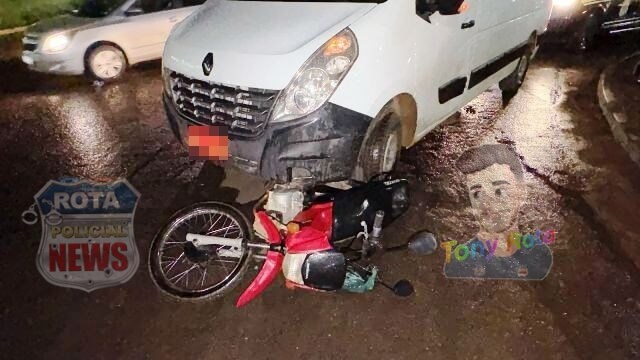 Uma colisão envolvendo uma van Renault pertencente ao supermercado Friron e uma motoneta Honda Pop 100 deixou uma mulher ferida na noite desta segunda-feira, 10 de novembro de 2025, na rotatória da BR-364 que dá acesso à avenida Paraná, no Setor 06, em Vilhena.
