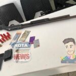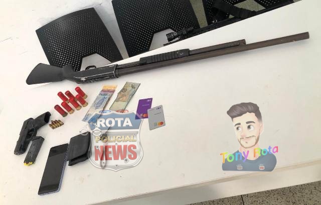 Com os detidos, os policiais apreenderam uma pistola calibre 9mm, modelo G2C, e uma espingarda calibre 12 de repetição, ambas em condições de uso.