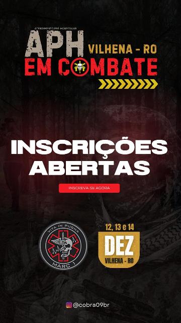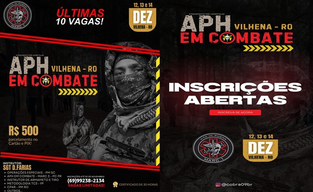 Vilhena, RO — A segunda edição do Curso de Atendimento Pré-Hospitalar em Combate (APH em Combate) será realizada nos dias 12, 13 e 14 de dezembro, trazendo novamente para a cidade um treinamento reconhecido pela intensidade, realismo e conteúdo técnico especializado. As últimas vagas já estão sendo preenchidas.