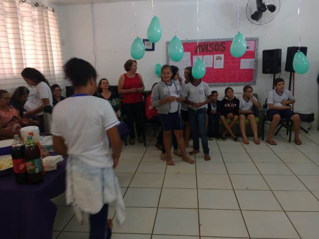 As alunas relataram que pediram a colaboração de alguns professores e equipe gestora da escola, que de imediato atenderam todas as sugestões, e diante disso os alunos foram se organizando com o apoio de seus familiares e na manhã de hoje fizeram uma festa surpresa, com bolos, salgados, suco e refrigerante.