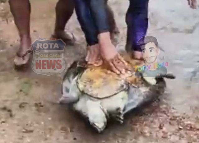 Pescadores capturaram uma tartaruga de grande porte em uma área alagada da região e realizaram a soltura consciente do animal em uma área de preservação mantida pela ASPRON – Associação de Preservação do Meio Ambiente.