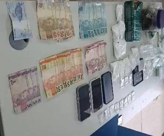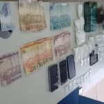Ainda na oficina, em um cômodo utilizado como quarto, foram apreendidos R$ 887 em espécie, dinheiro apontado como proveniente do comércio de entorpecentes. Sobre a bancada do estabelecimento, dentro de uma sacola preta, foi localizada mais uma quantidade de maconha. Em outro cômodo, possivelmente usado como cozinha, os policiais encontraram outra porção de substância análoga à cocaína e uma balança digital.