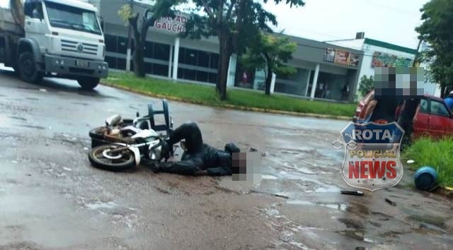 De acordo com o apurado, um entregador de gás acabou sendo atingido por um veículo de passeio no cruzamento das vias.