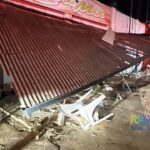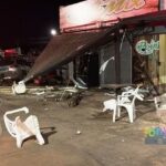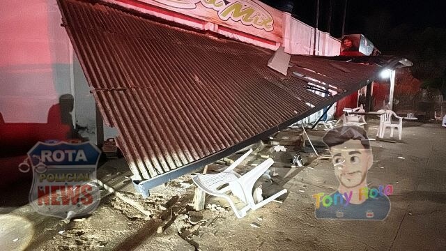 O impacto foi tão forte que derrubou parte da estrutura, incluindo telhas, cadeiras, mesas e outros objetos, causando extensos danos materiais e por muito pouco não fazendo vítimas.