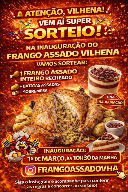 A cidade de Vilhena ganha um novo empreendimento gastronômico no próximo dia 1º de março, a partir das 10h30, com a inauguração do Frango Assado Vilhena, que promete conquistar o público com sabor caseiro, variedade no cardápio e combos promocionais.
