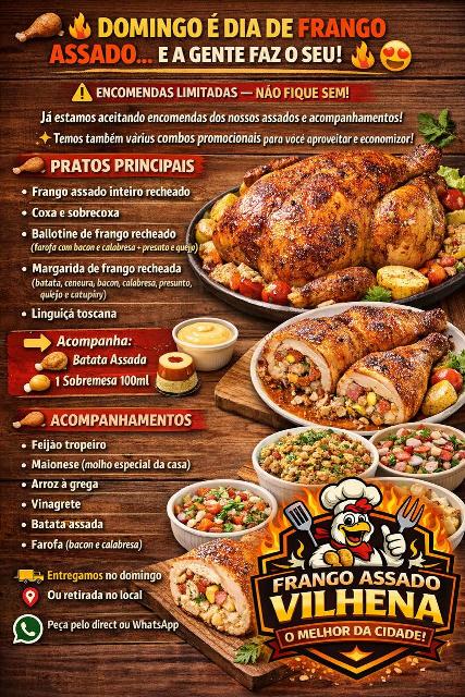 Com a proposta de unir sabor, qualidade e preço justo, o Frango Assado Vilhena chega com a promessa de se tornar referência no segmento e conquistar o paladar dos vilhenenses.
