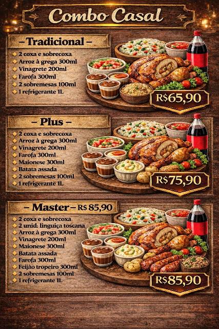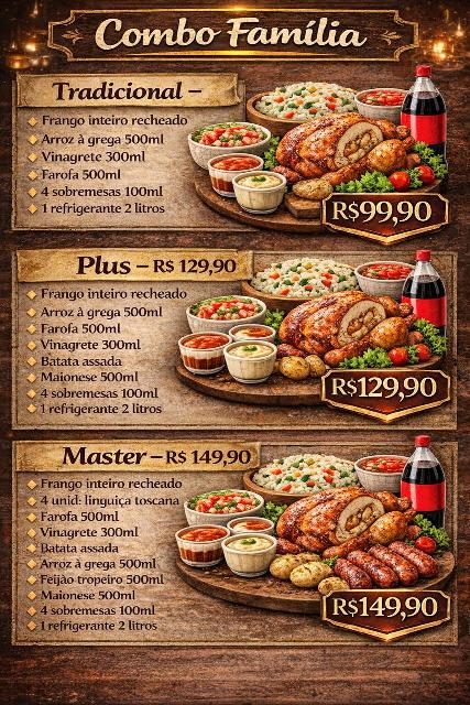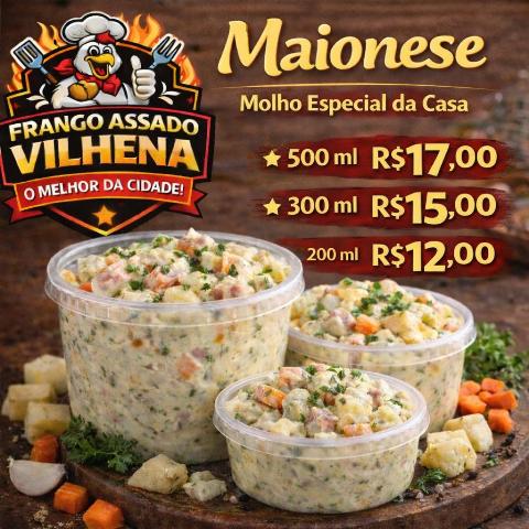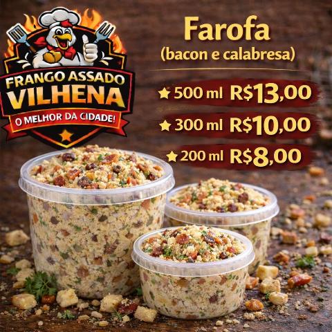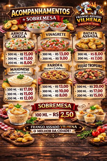 Para complementar, o Frango Assado Vilhena disponibiliza uma variedade de acompanhamentos: