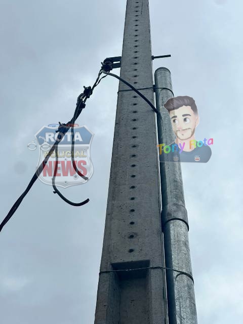 De acordo com as informações, os suspeitos teriam subido na estrutura do poste e realizado o corte dos cabos mesmo estando energizados, o que aumenta o risco da ação e levanta preocupação quanto à segurança no local.