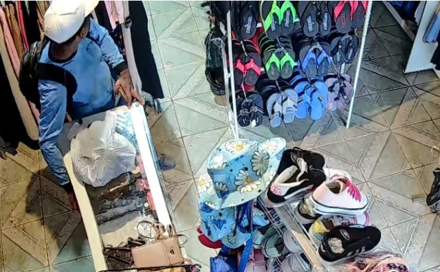 Após escolher algumas peças de roupa, o indivíduo realizou o pagamento e, enquanto o proprietário se dirigia até uma funcionária para providenciar o troco, o suspeito aproveitou a situação para subtrair dinheiro que estava guardado em uma caixa sob o balcão.