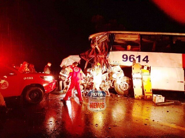 Eram por volta das 19h30 quando o ônibus foi atingido pelo caminhão, sendo que com a colisão, seis pessoas acabaram morrendo na hora, entre estes, a passageira do ônibus identificada como Maria Pereira da Costa, moradora de Vilhena/RO, que foi lançada para fora do ônibus, presa em um dos bancos.