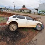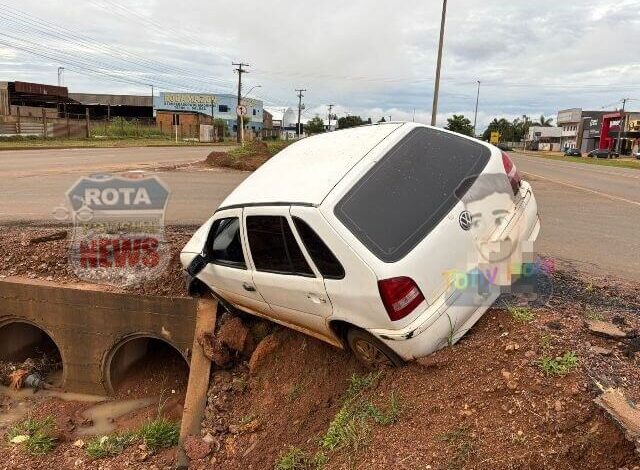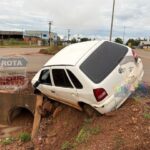 O motorista de um Volkswagen Gol, de cor branco, trafegava pela rodovia sentido Juína/MT quando, ao tentar realizar uma manobra de retorno, calculou mal o momento da conversão e acabou parando dentro de uma galeria de esgoto aberta às margens da pista.
