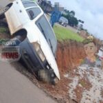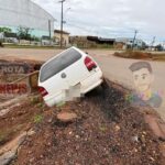 Motorista errou manobra de retorno e veículo ficou preso em buraco; situação do local preocupa população