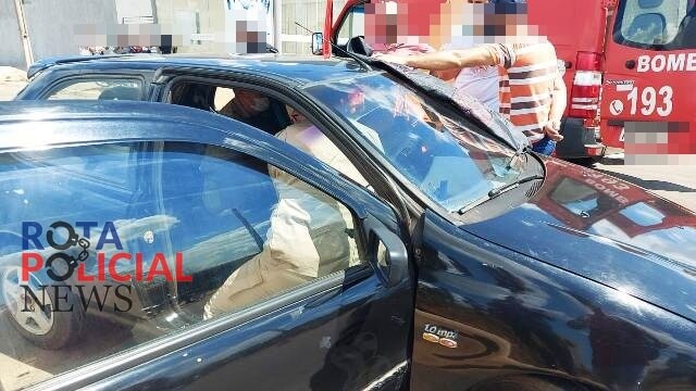 Grave: motociclista sofre possível traumatismo craniano e motorista fica presa as ferragens em acidente