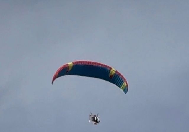 Um homem pilotando um Paramotor foi flagrado sobrevoando o bairro Embratel, em Vilhena, na tarde desta quinta-feira, 12 de março de 2026, e acabou chamando a atenção de moradores da região.