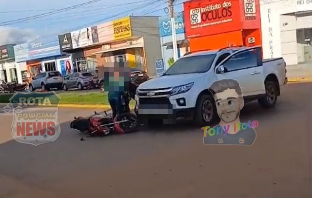 A colisão envolveu uma camionete Chevrolet S-10 e uma motocicleta, deixando a piloto da moto com escoriações pelo corpo.