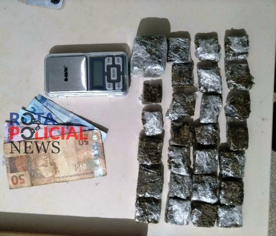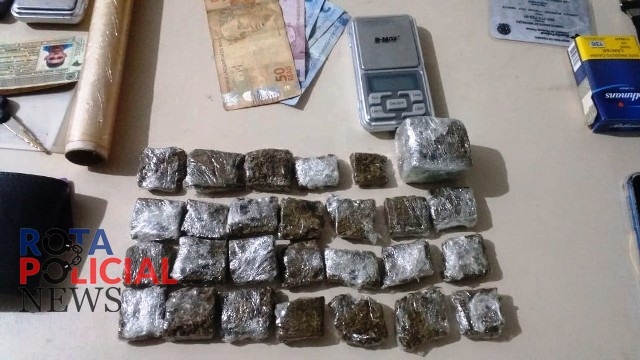 No endereço, os policiais foram atendidos pela mãe do criminoso, a qual autorizou a entrada dos policiais, sendo localizado no quarto do marginal outros 19 invólucros embalados de maconha, totalizando 149 gramas, além de uma balança de precisão e rolo de papel filme utilizados para embalagem das drogas.